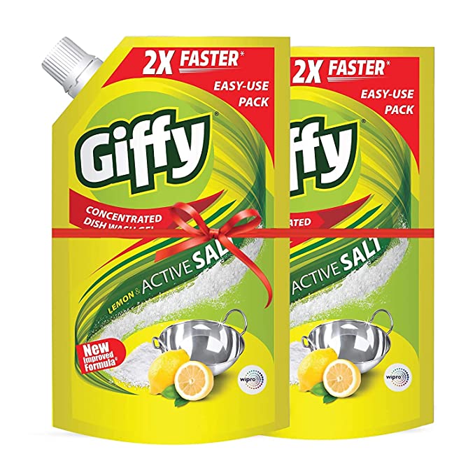 Giffy Lemon & Active Salt Concentrated Dish Wash Gel by Wipro, 900ml (Pack of 2)