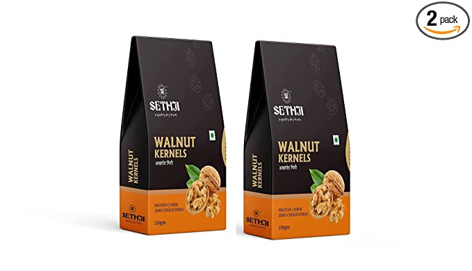SETHJI 250 GM Premium Fresh and Delicious two piece (half) Walnut Kernels/Walnuts without Shell/Akhrot Giri, Healthy & Delightful, Ingredient for Recipes, Vaccum Pack (Pack of 2 – 0.5kg(250gm each) source california , no bitter taste guranteed
