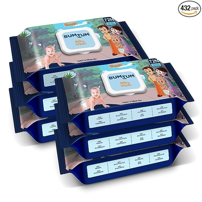 Wet Wipes with Lid (Pack of 6, 72 Pcs Each)
